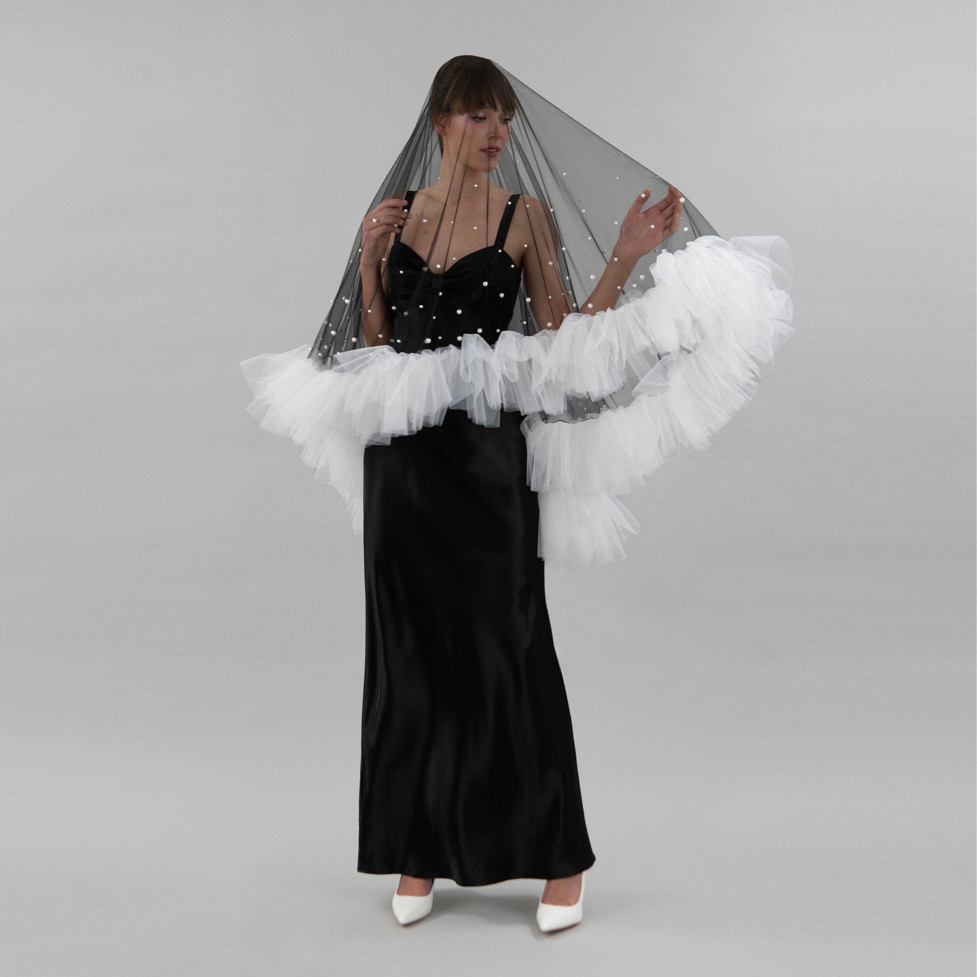 Black and Ivory Ruffle Pearl Veil