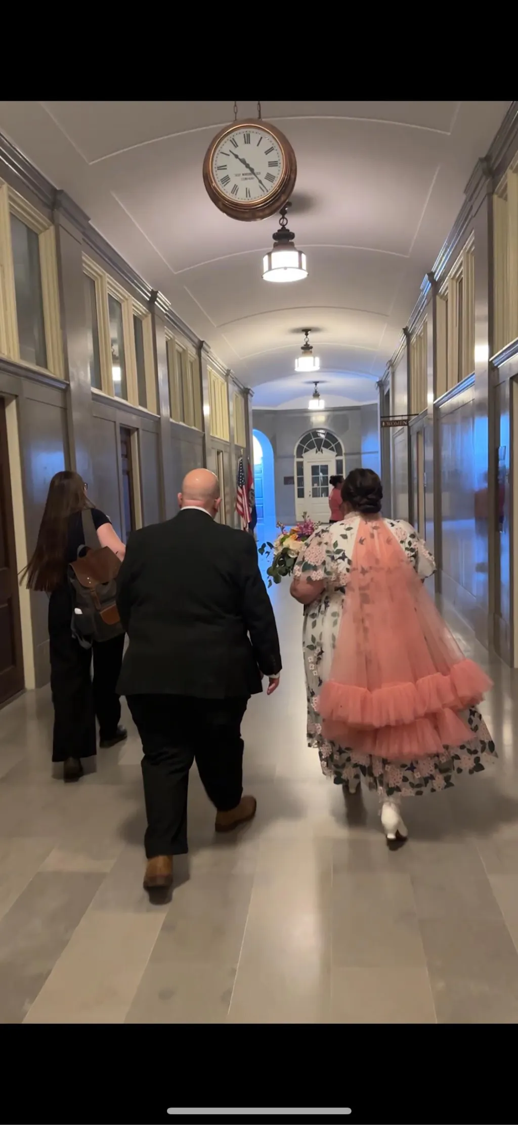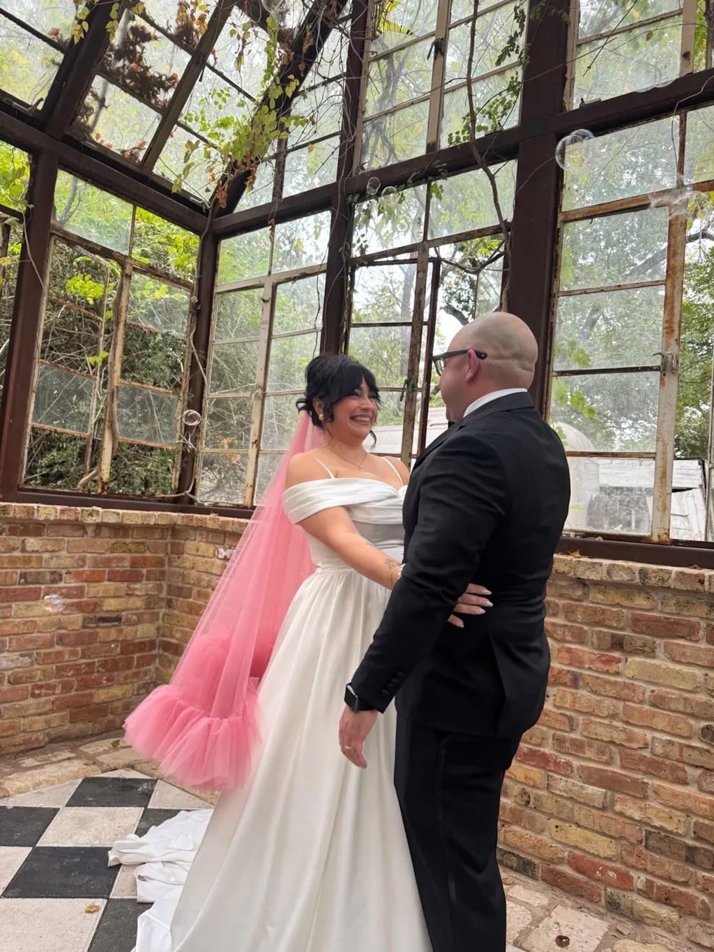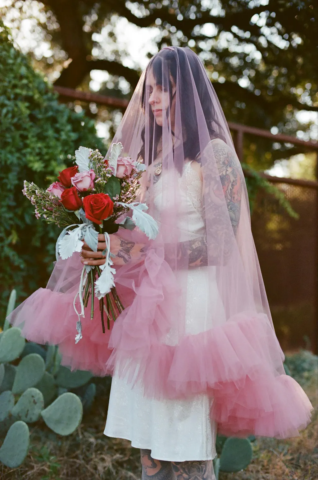 Dusty pink ruffle veil is a perfect statement piece for an alternative bride.