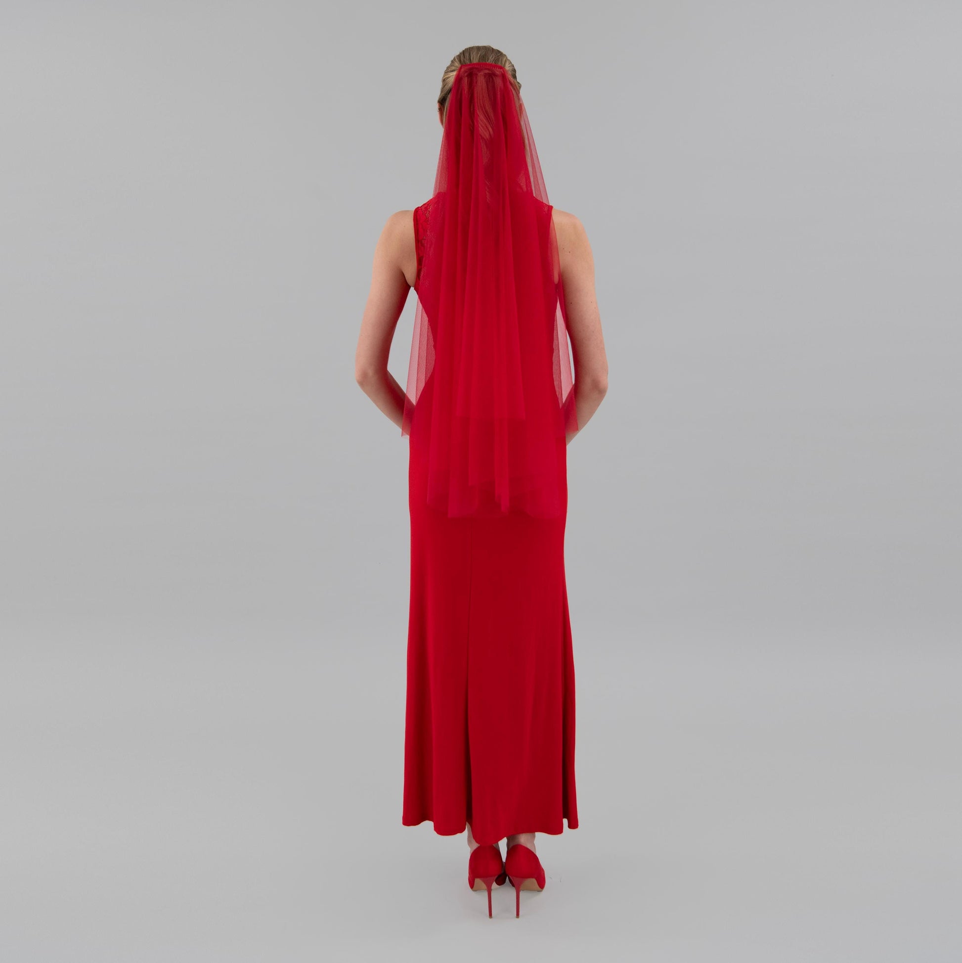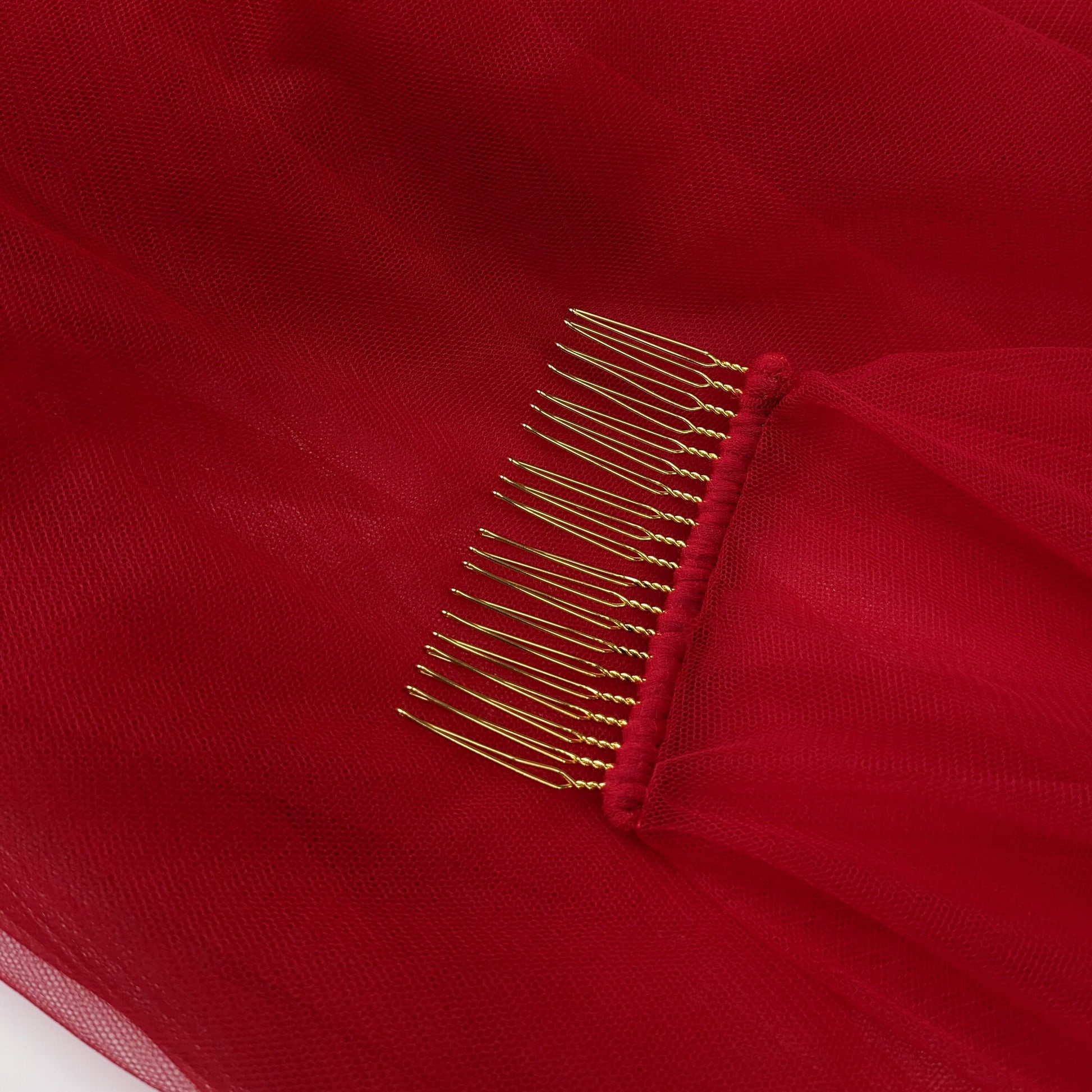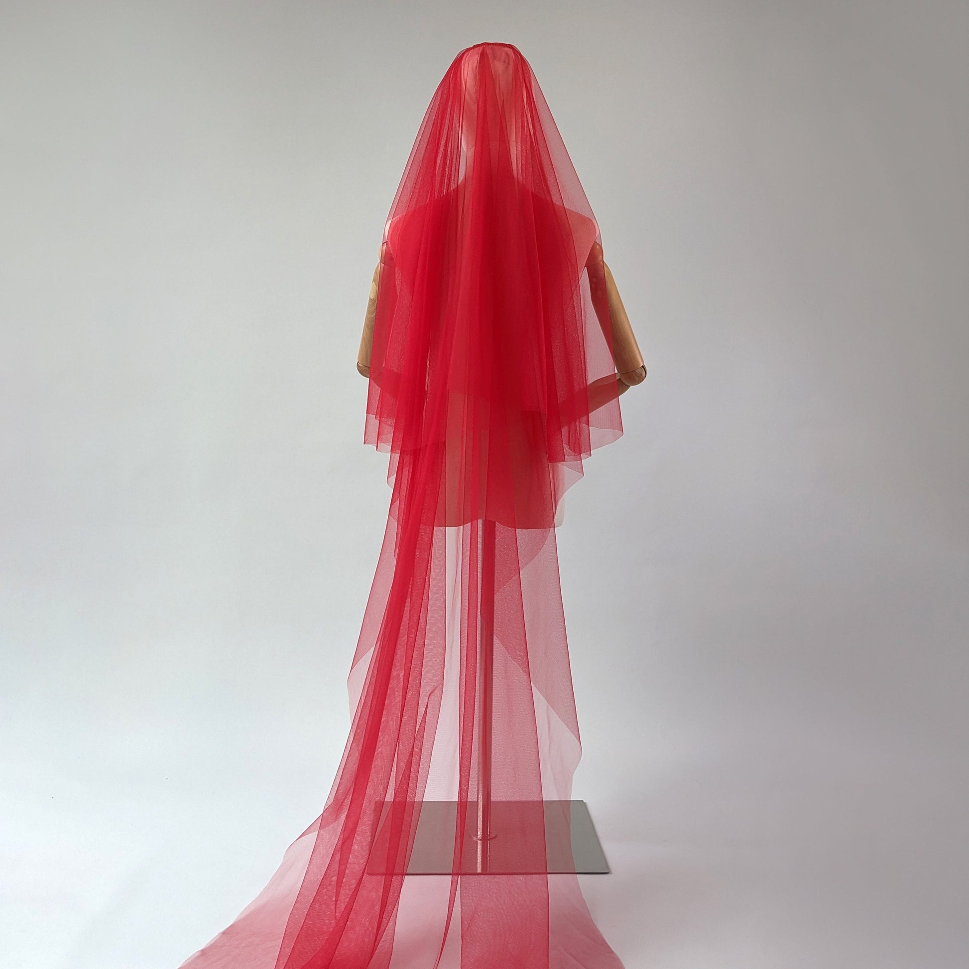 Veil is made from soft rose red color tulle, that is pleasant to touch, is extremely lightweight and drapes beautifully.