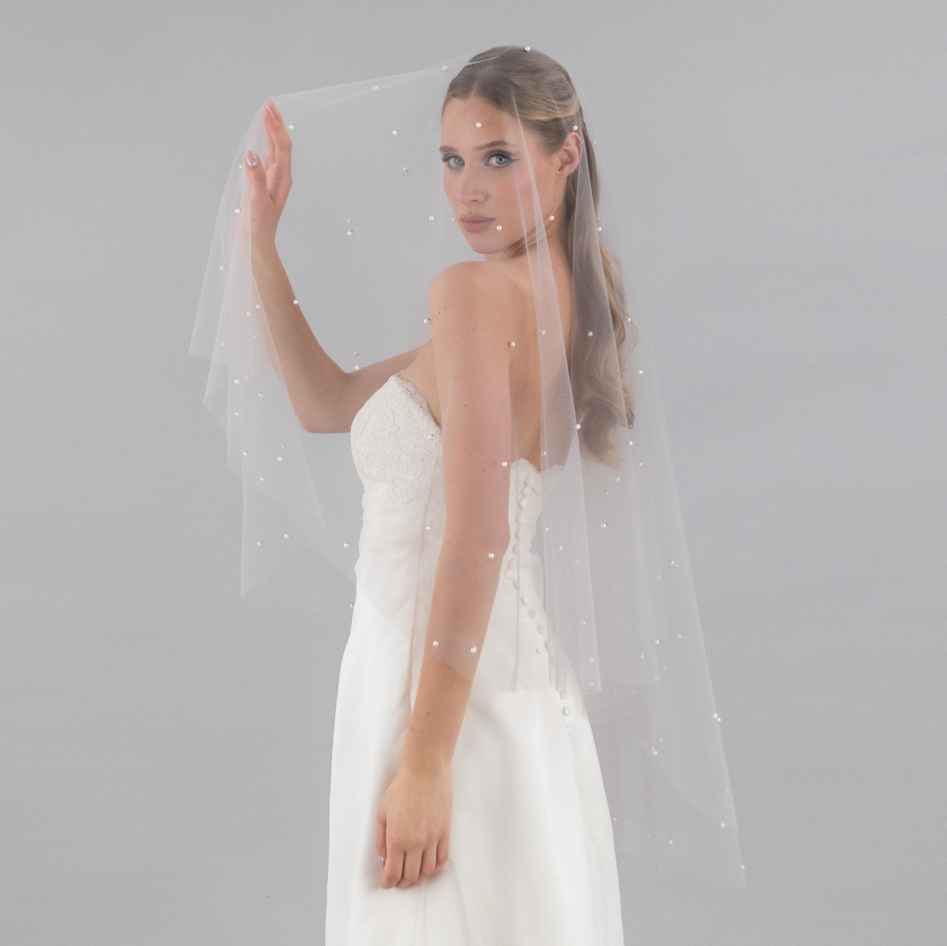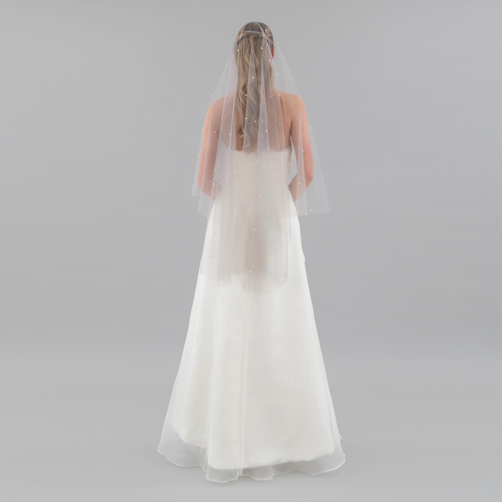Stone Gray Pearl Blusher Veil